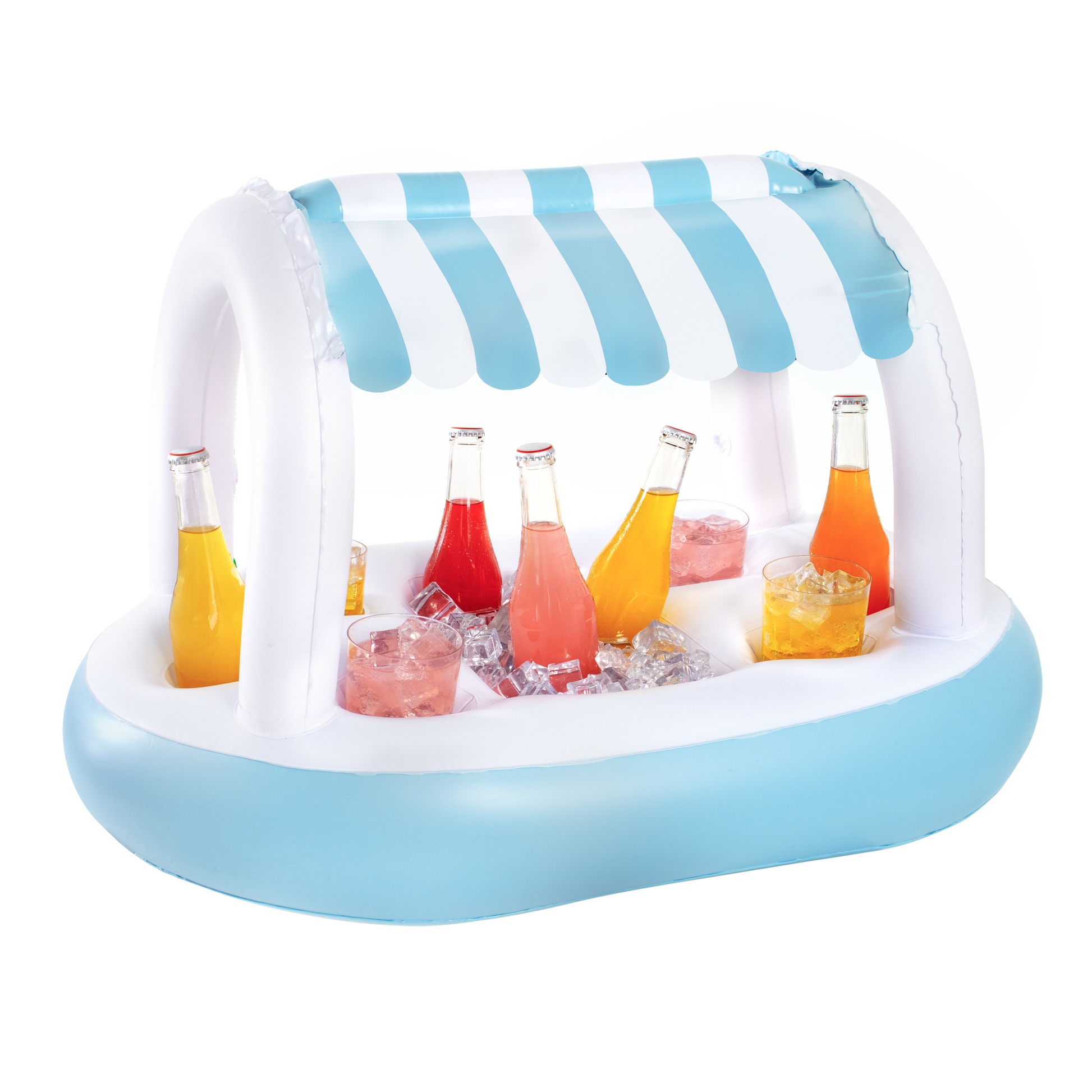 Floating Buffet Bar with Canopy - Blue & White Cabana Stripes