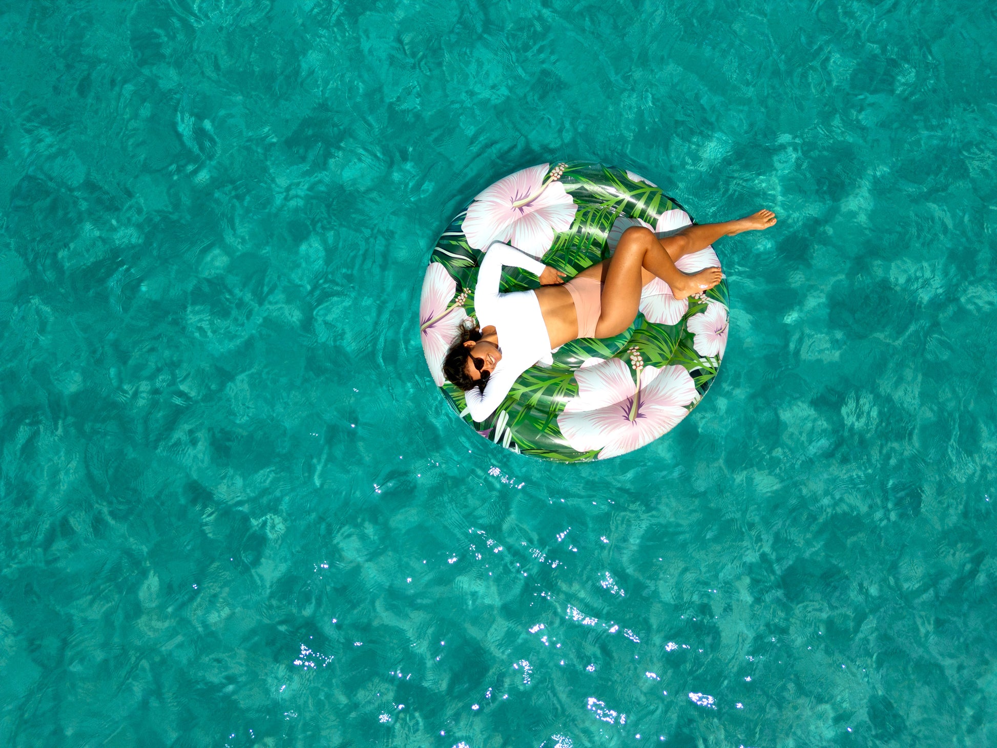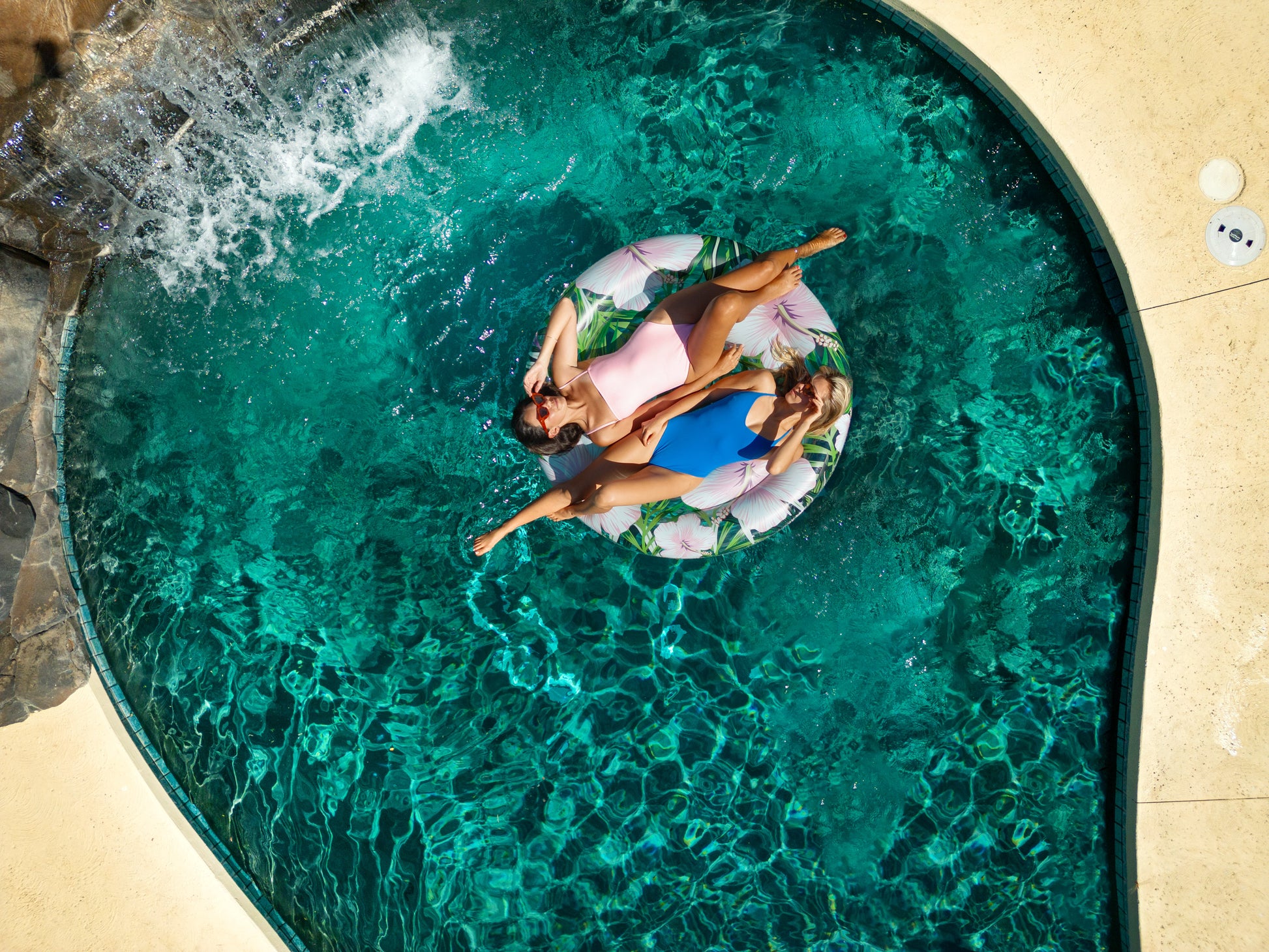 • Bright tropical hibiscus print adds eye-catching flair to any pool.
