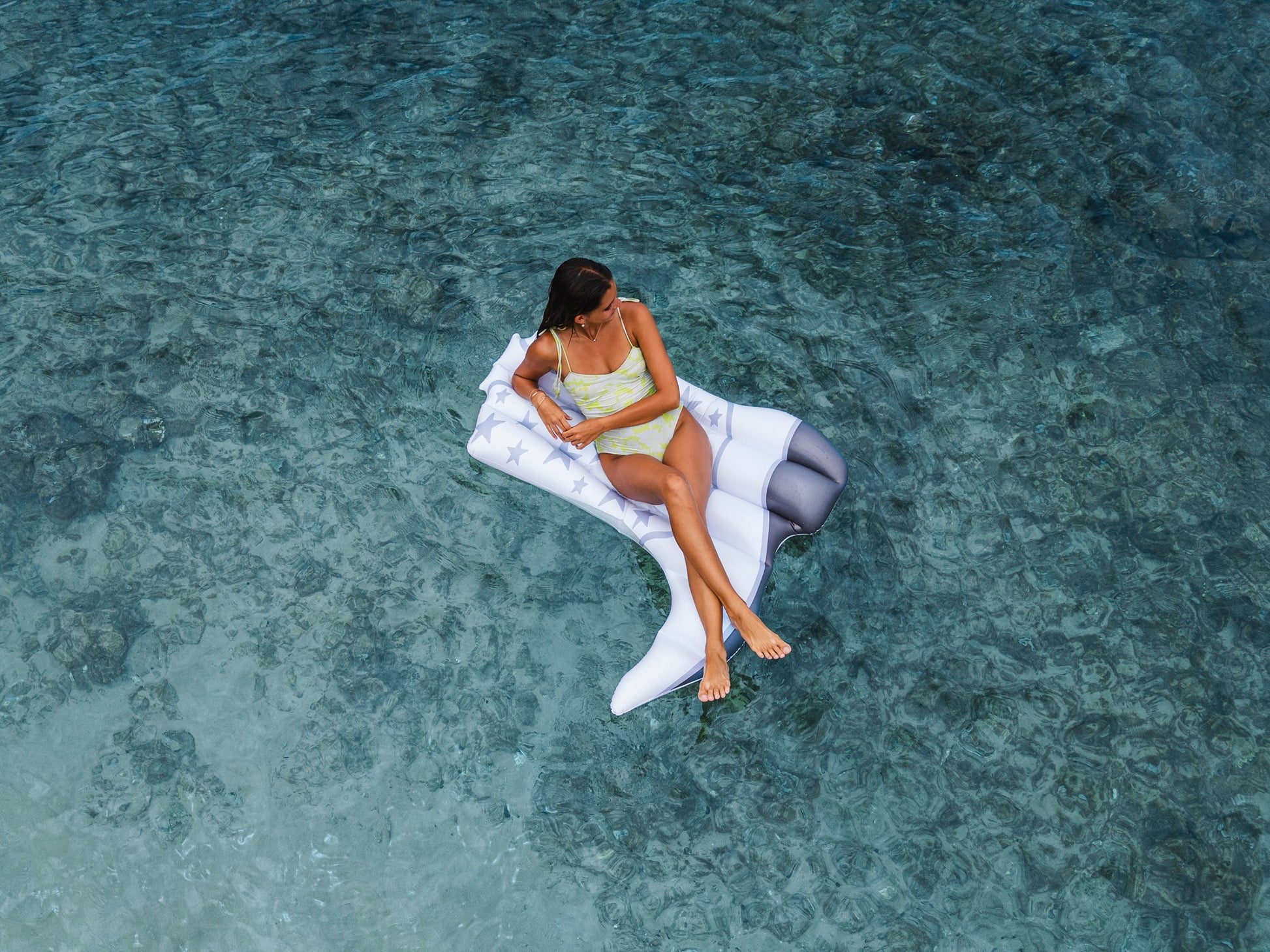 "Yee-haw! Ride into the pool in style with this Giant White Cowgirl Boot 54" Pool Float.