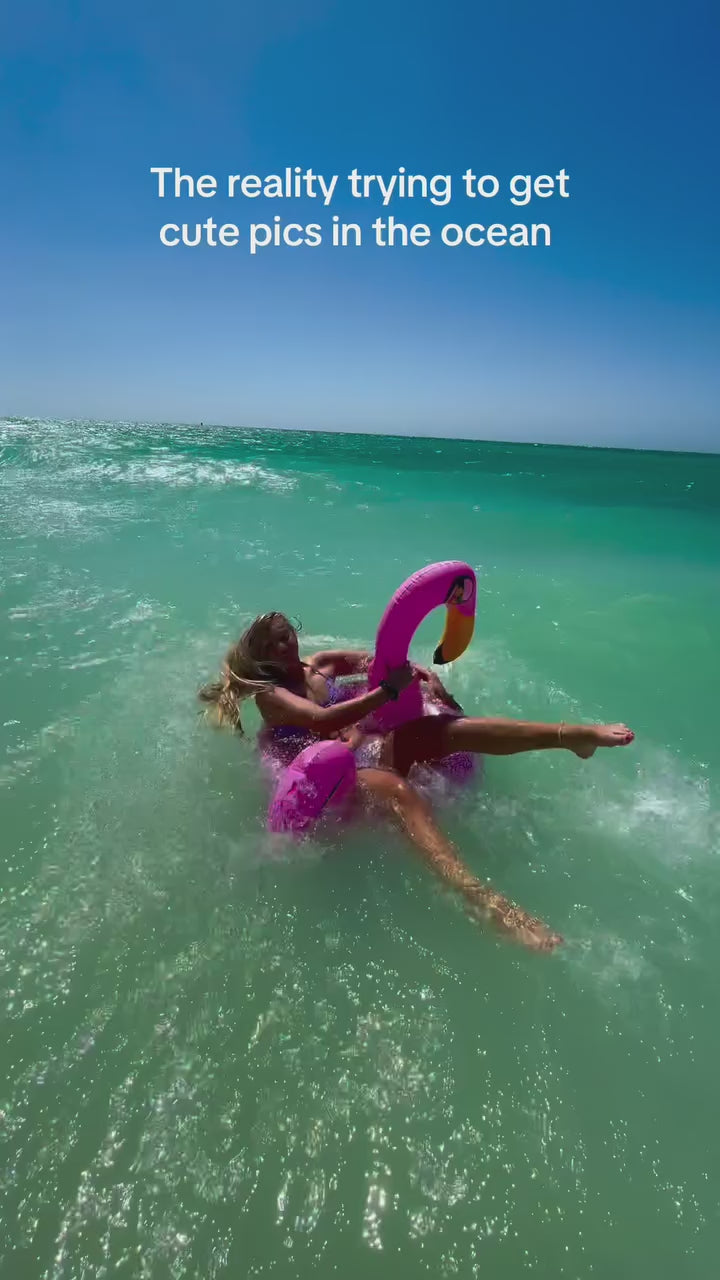Filled with pink holographic glitter that sparkles and changes color in the sunlight, the Glitter Flamingo creates a dazzling spectacle in the water. Crafted from durable PVC, this tube can hold up to 250 lbs, guaranteeing durability and stability for all your pool adventures. Dive into pool luxury with the Glitter Flamingo Pool Tube and let your personality shine bright!