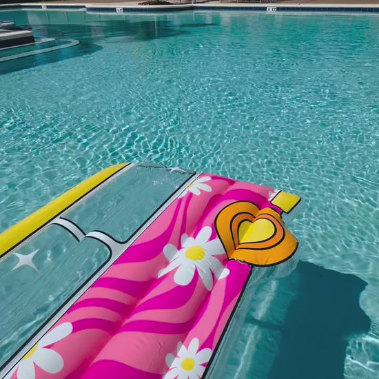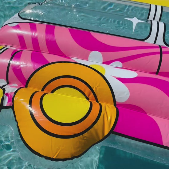 Cruise the pool waves in style with a Retro Van Deluxe Inflatable Raft! Its groovy 60s-inspired design is perfect for lounging in the sun or navigating the gentle tides.