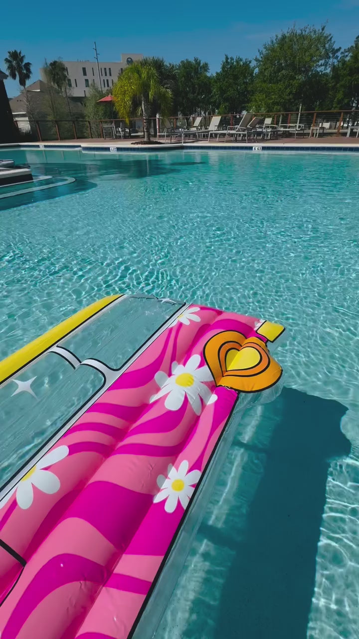 Measuring 5 feet long, the Retro Van Pool Raft is perfect for both kids and adults, offering plenty of space to lounge and relax.