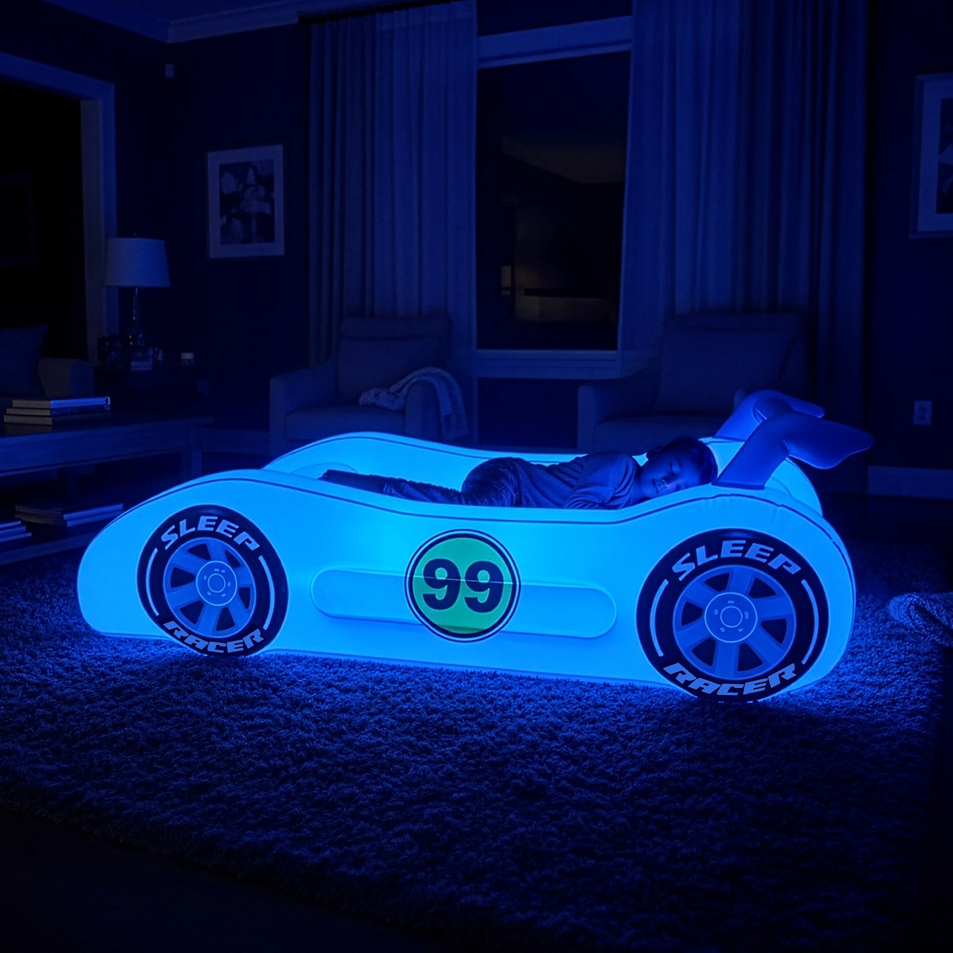 Sleep Racer Dream Car - Blue Illuminated LED Inflatable Car Bed Ages 3 to 12